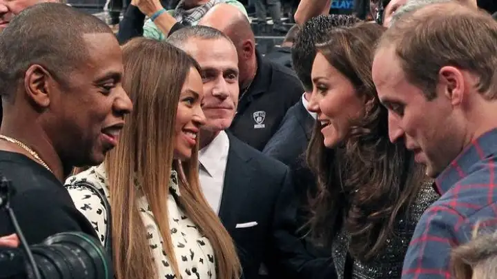 O encontro dos casais reais da música e do Reino Unido aconteceu em plena quadra de basquete durante a partida dos times Brooklyn Nets e Cleveland Cavaliers, em Nova Iorque, deixando tanto a plateia quanto a imprensa em polvorosa para registrar o momento.