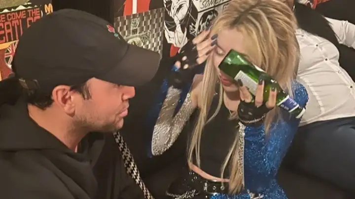 Depois do show, Ava Max estava acompanhada pelo empresário Scooter Braun, enquanto precisou fazer uma compressa improvisada no olho com uma garrafa. Confira: