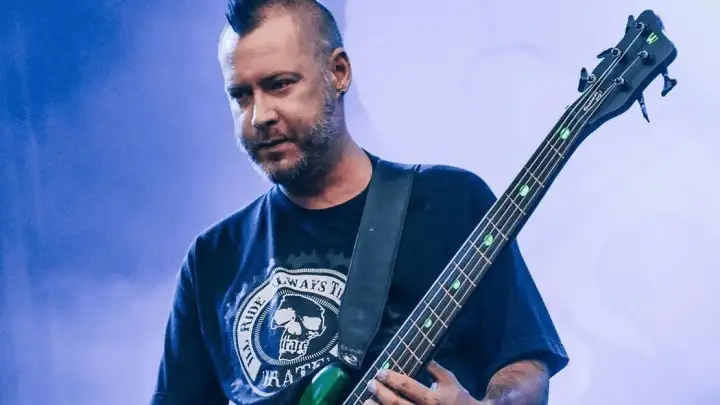 O baixista fundador do Limp Bizkit, Sam Rivers, morreu neste sábado (18), aos 48 anos (Foto: Stefan Hoederath/Redferns via Getty).