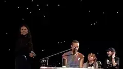 Gaby Amarantos e Chris Martin são filmados conversando em camarim após rumores de romance