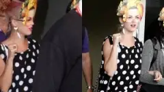 Katy Perry desembarca no RJ com cabelo rosa e máscara de Carmen Miranda